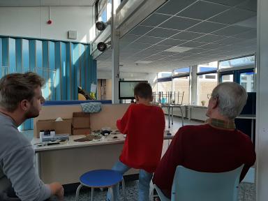 Op de Burendag 25 september jl. in De Ontmoeting werd enthousiast door zo'n 35 buren meegekeken op de microscoop. Zo fijn dat je met een paar mensen tegelijk naar de objecten en vloeistoffen onder de microscoop kunt kijken. En ja we zagen ook een 'oranje monster' in het water, gehaald uit de vijver langs de Batavenweg.