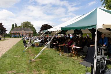 - Bingerden ontkwam helaas ook niet aan het geweld van de Tweede Wereldoorlog. In april 1945 werd het huis door terugtrekkende Duitse troepen in brand gestoken. In 1957 werd het huis op kleinere schaal herbouwd in een achttiende-eeuwse stijl. In de tuin van Bingerden zal de maaltijd plaatsvinden.