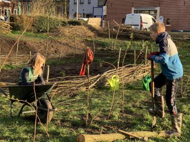 Een 'koude-grond' moestuinplek afgezet met wilgentenen