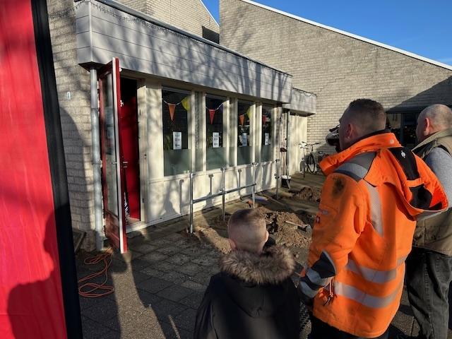 Op zaterdag 7 februari jl. was het dan zover: de fietsenstalling is - onder het toezicht oog van onze technische man - geplaatst door enkele enthousiaste vrijwilligers. We konden door drukke werkzaamheden en een overvolle agenda niet overgaan tot plaatsing in december. En in januari van dit jaar speelde het weer en m.n. de vorst in de grond ons parten.