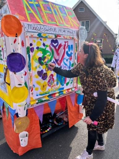We hebben leuke kleurrijke karren kunnen bouwen voor de boemelparade, waarbij wij het publiek hebben uitgenodigd om samen een uniek meesterwerk te creëren. We kunnen wel zeggen dat dat zeer geslaagd is geweest. We willen 1 doek graag aanbieden aan Zevenaar Doet en hopen dat dit Zevenaarse meesterwerk een leuke plek kan krijgen in het gemeentehuis. De reacties tijdens de optocht waren in ieder geval zeer positief. Het was een kleurrijke gezellige groep van onze kunstschool De Wissel met beroemde schilders, zoals Vincent van Gogh, Frida Kahlo, Pablo Picasso, Salvador Dahli, Bob Ross en het schilderij 't meisje met de parel van Vermeer. We hadden zelfs een levende schildersezel. Ook tante Til van de familie Knots was van de partij met een kloddertje roze hier en daar... het meest gezien was het levende schilderij "The Scream" van Edvard Munch, die schreeuwend langs het publiek liep.